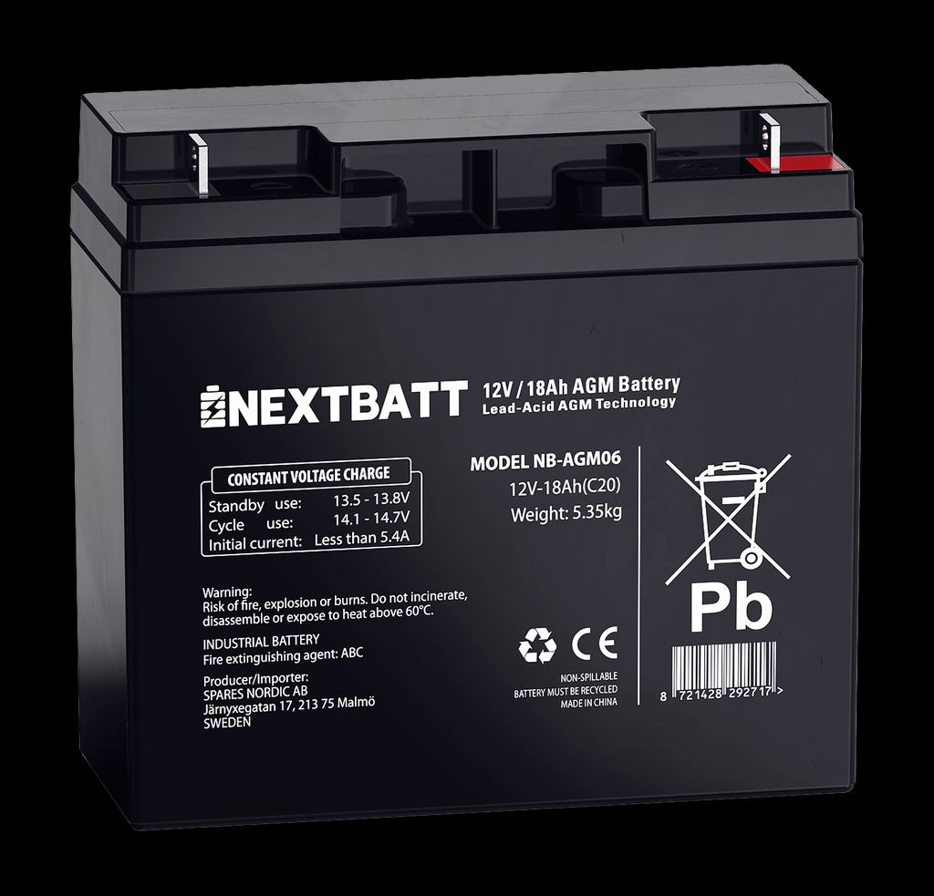 NextBatt AGM-batteri 12V 18Ah er udviklet til høj driftssikkerhed og lang levetid.