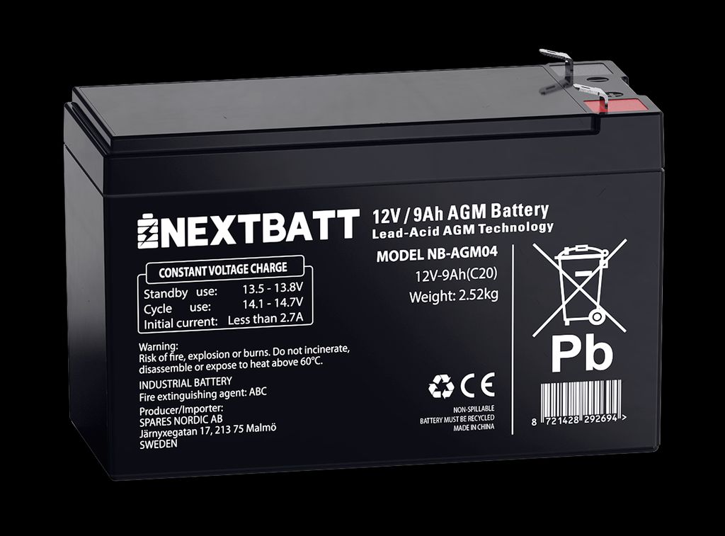 NextBatt AGM-batteri 12V 9Ah er udviklet til høj driftssikkerhed og lang levetid.